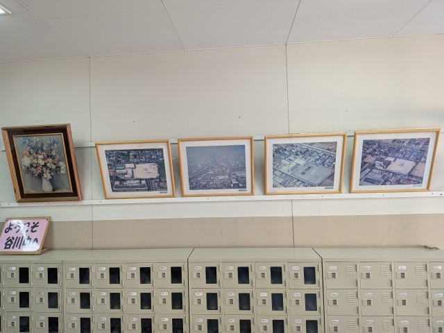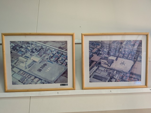 職員玄関に周年行事に撮影した校舎の航空写真が飾られています。本校の創立は1978年4月1日です。20周年、30周年の航空写真の次は50周年になります。48期生が3年生の時に本校は50周年を迎えます。