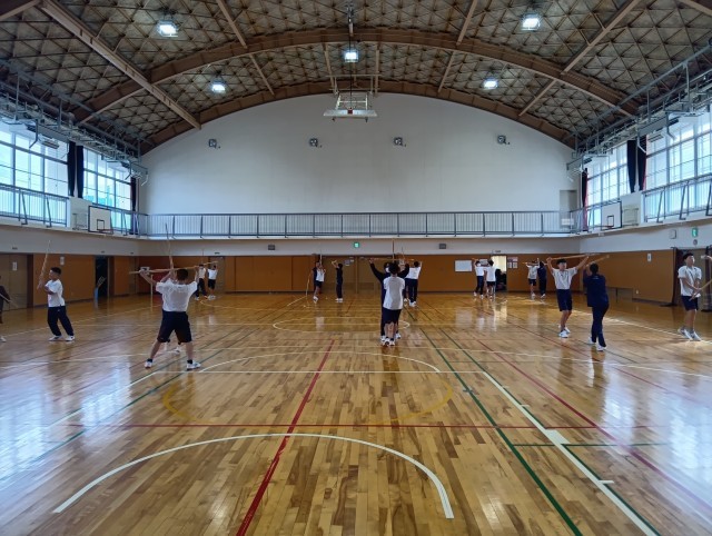 学習内容は「剣道」でした。教科担当の先生が見本を見せながら、基本的な技の練習を生徒は行っていました。きびきびとした子どもたちの動きに感心しました。