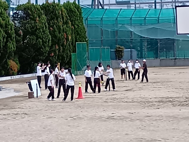 学習内容は「ソフトボール」でした。今日は2つのグループに分かれて、バッティング練習が行われていました。涼しくなった気温の中で行う体育に、子どもたちも笑顔てした。
