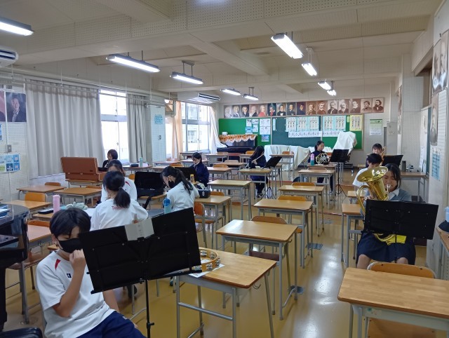 写真は上から、卓球部、美術部、吹奏楽部です。3年生の卒業アルバム用の撮影も行いました。