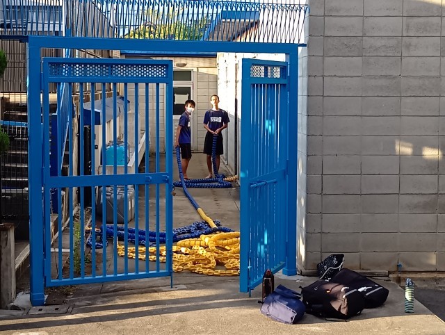 写真は上から、科学部、水泳部、女子バレー部です。過ごしやすくなった気温の中で、どの部もがんばっていました。
