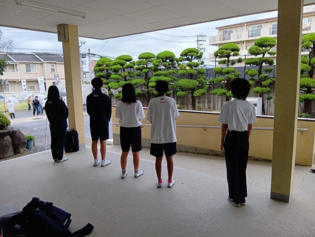 地域の方とともに、毎朝、本校の生徒会役員が朝のあいさつ運動を行っています。今日は本校のリーダーである生徒会役員の後ろ姿を撮ってみました。