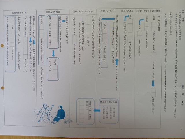 学習教材は「故郷」でした。大変丁寧に作られた学習プリントが印象的でした。