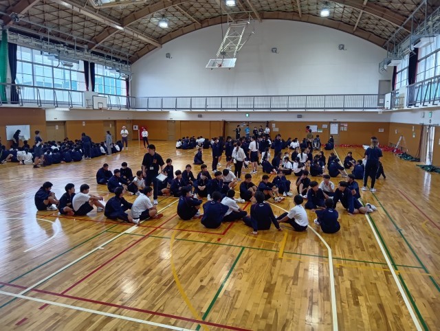 今日はグラウンドコンディションが不良のため、体育館での全体練習となりました。閉会式の練習のあと、招集練習を行いました。各団長、副団長がよく団員を引っ張っていました。