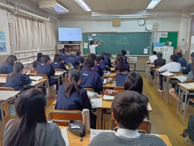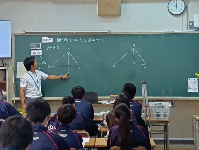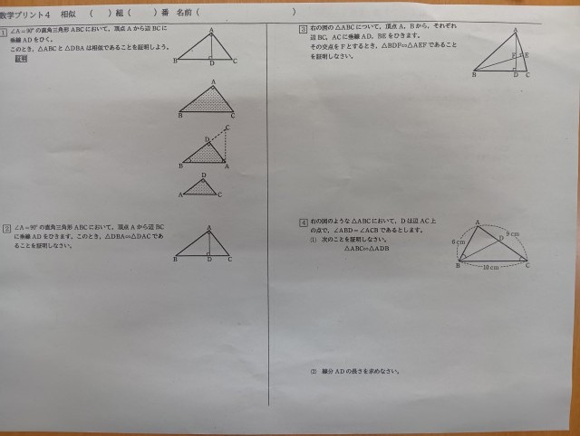 学習内容は「三角形の相似条件」でした。高校入試に必ず出題される三角形の証明問題。合同よりも圧倒的に相似が出ます。しっかり復習しておきましょう。