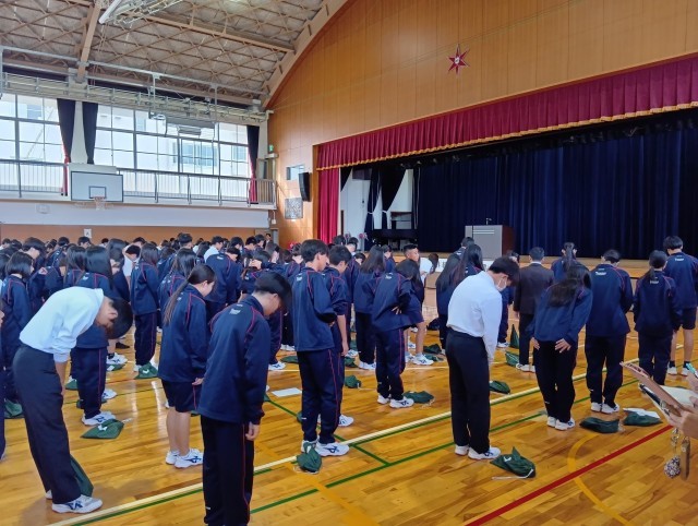 生徒会からは先日の生徒研修会で話し合った後期の生徒会スローガン「TEAM32~認め合い・褒め合い・高め合い 3つの愛で「いいね!」を増やそう」の発表がありました。3つの愛でたくさんの「いいね!」が増えることを心から願っています。