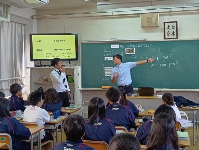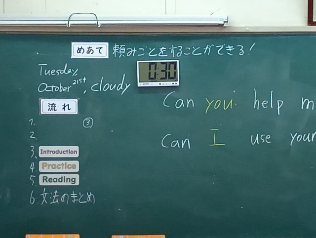 英語科教員2名によるティームティーチングが行われていました。2人の絶妙なコンビネーションとテンポのある授業で、子どもたちはとても楽しく授業に参加をすることができていました。見事な授業が展開されていると感じました。