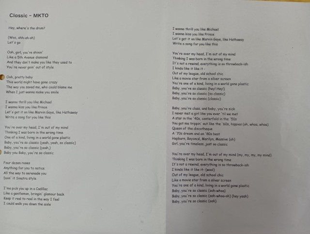 配られた学習プリントと大型テレビに映し出された動画(音楽)を使いながら、授業が進められていました。静かな教室に素敵な音楽が流れていました。