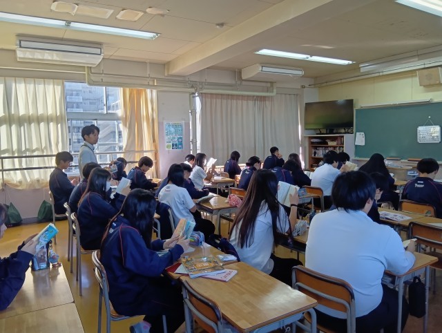 担任の先生は教室で、副担任の先生は廊下で子どもたちと一緒に本を読んでいました。写真は上から、2年1組、2年2組、2年3組です。