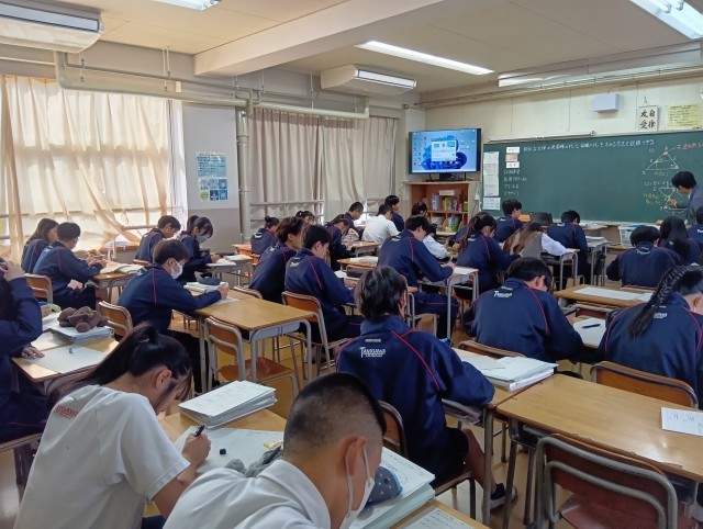 写真は上から、2組(理科→運動とエネルギー)、3組(数学→相似な図形の面積比、体積比)です。11月7日(金)の実力テストに向けて、子どもたちは、がんばっていました。