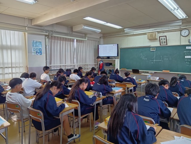 写真は上から、1組(理科→光による現象)、2組(数学→比例のグラフ)です。教室に授業を見に行くと、いつも素敵なあいさつをしてくれる学年です。