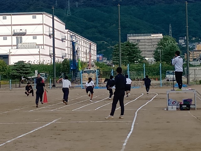 今年の体育大会の新種目になる「団対抗全員リレー」を初めて練習しました。全校生徒が走り、バトンを繋ぎます。今日は緑団が優勝でした。最後まで一生懸命に走る谷中生に感動しました。