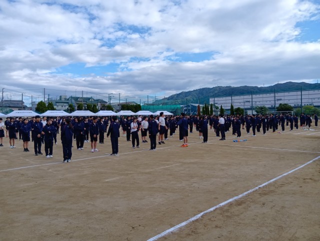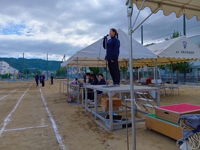 時間通りに予行が始まりました。開会式と準備体操の様子です。怪我のないようにしっかり準備体操をすることができていました。