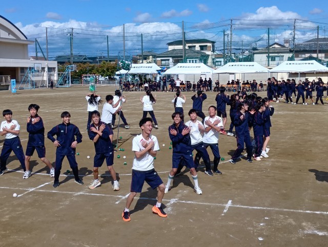 団対抗玉入れの様子です。各団に分かれて、3回戦行います。最後はみんなでチェッコリダンスをして、勝敗を決定します。