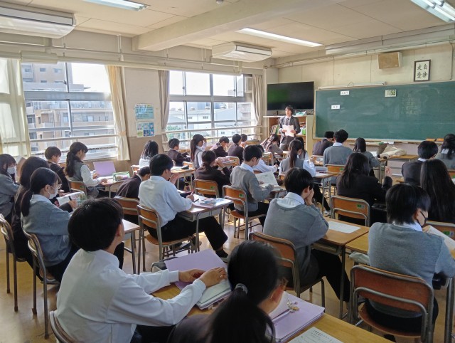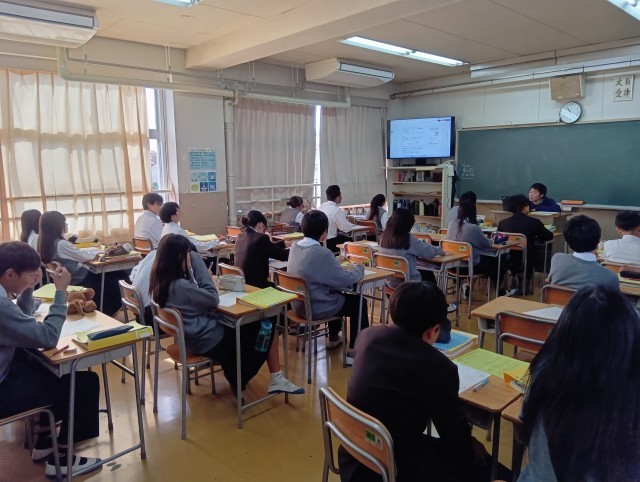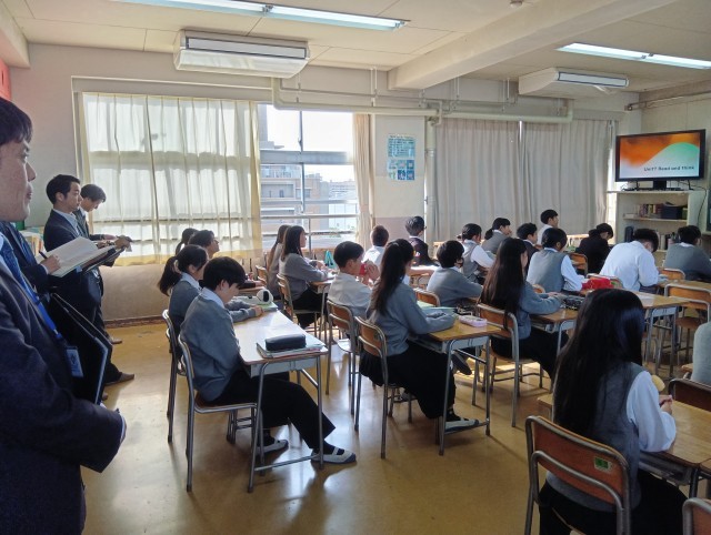 写真は上から、1組(数学)、2組(英語)、3組(社会)です。各クラスの学習内容は以下の通りです。今日は大阪府教育委員会や大東市教育研究所より、指導主事が本校の授業見学に来られました。