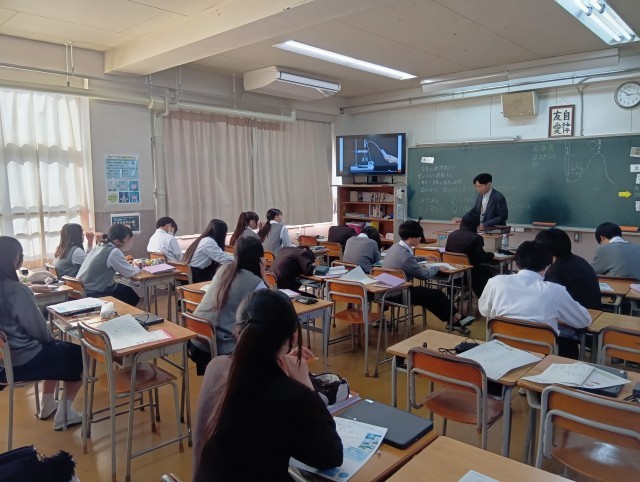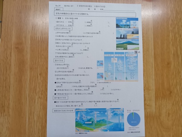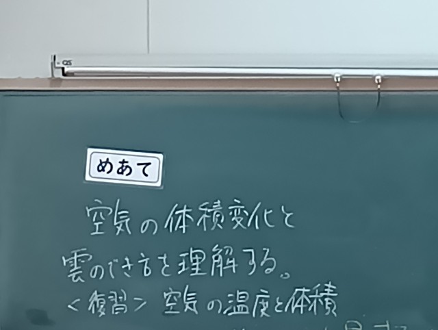 授業のめあては「空気の体積変化と雲のでき方を理解する」でした。大型テレビに映し出された映像を静かに、真剣に、見ることができていました。