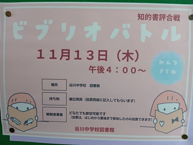 図書委員会が中心となり、今年度のビブリオバトルの準備が着々と進められています。