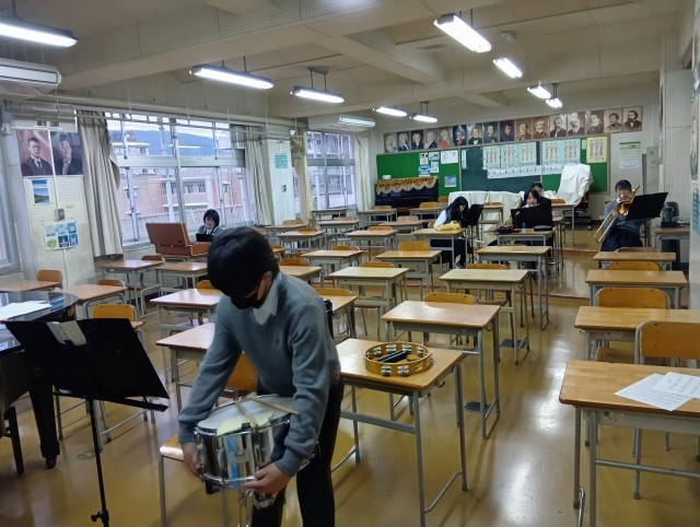 写真は上から、卓球部、吹奏楽部、剣道部です。どの部もよく練習していました。