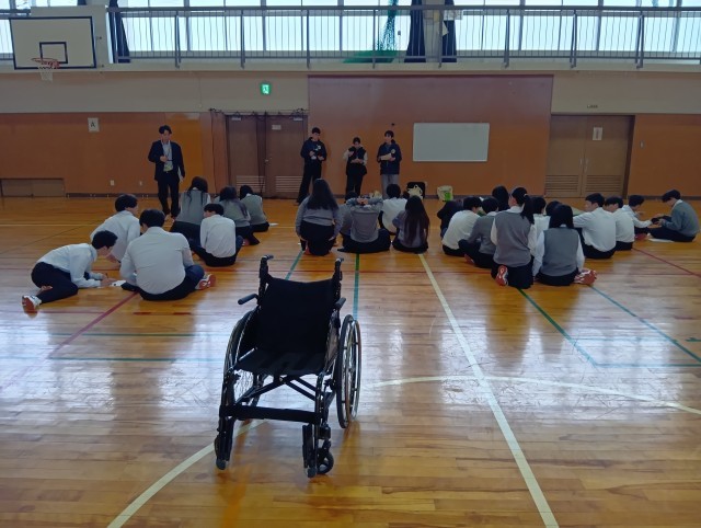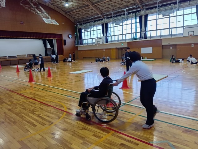 12月12日(金)の障がい者理解学習に向けて、 今日は大東市社会福祉協議会より職員の方が来校され、車椅子体験をさせていただきました。実際に車椅子に乗ったり、押したりして、バリアフリーについても講義していただきました。障がいのある、なしに関わらず、誰もが生活しやすい町に大東市がなっていくことを願っています。