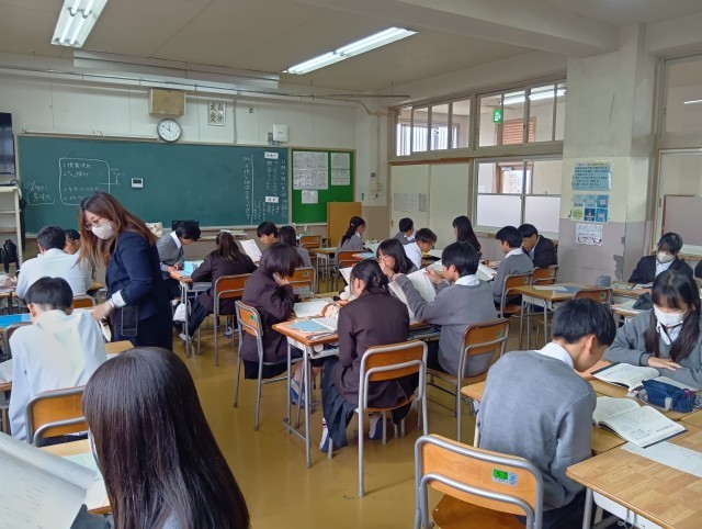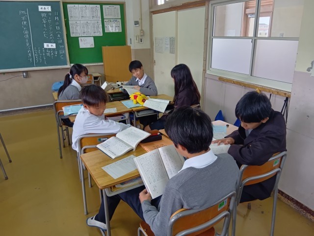 写真は授業のながれの3の班読をしているところです。班で大きな声で本を読むことができていました、さすが48期生だと思いました。