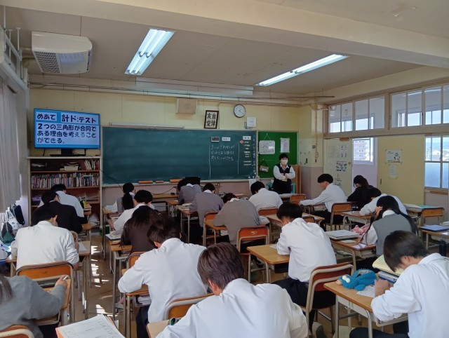 今日からテスト1週間前のため、部活動もありません。谷中生には「テスト前の猛勉強」を期待しています。写真は上から、1組(英語【ティームティーチング】)、2組(理科)、3組(数学)です。