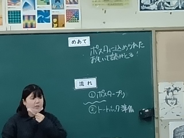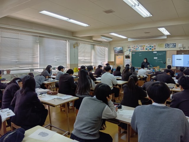 学習内容は「メッセージを分かりやすくするデザインの力」でした。テスト範囲ということもあり、静かにプリントへの記入ができていました。