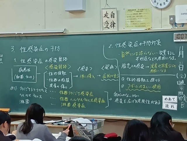 学習内容は「性感染症の予防」でした。どの生徒も真剣に先生の話を聞くことがてきていました。