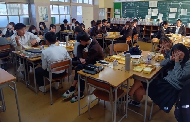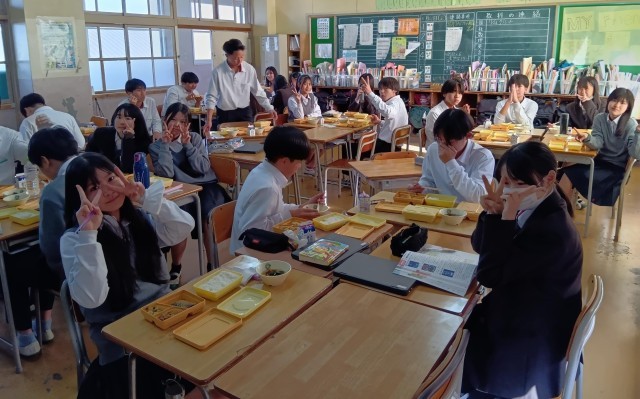 温かい給食をみんなで仲良くいただきました。写真は上から、2年1組、2年2組、2年3組です。