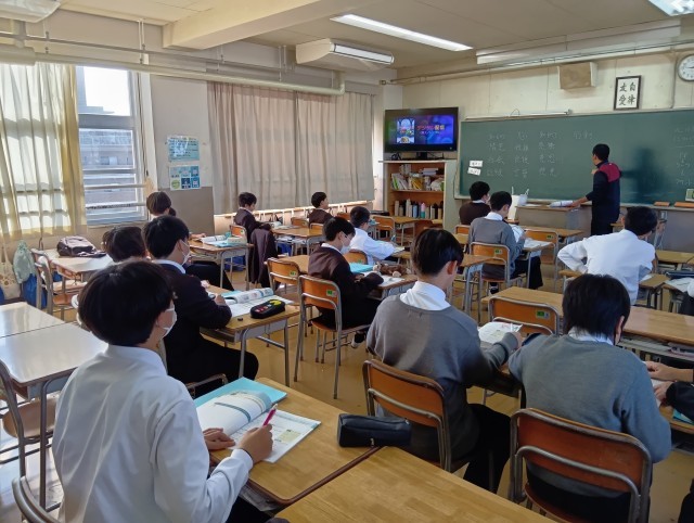 学習内容は「心の発達」でした。大型テレビに映し出された映像をもとに、説明が行われていました。
