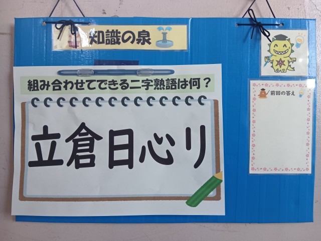 組み合わせてできる二字熟語は、一体何でしょう? 分かった人は、校長先生に教えてください。