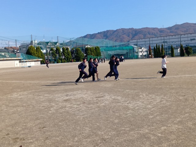 女子も持久走が行われていました。仲間に対しての「がんばれー!」の声援がとても温かく感じました。