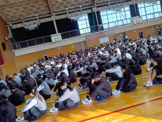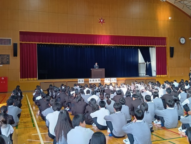 校長からは、校訓の「自律・友愛」についてと「辛抱(心棒)」について、生徒に話しました。詳しい内容は、お子様にお聞きください。