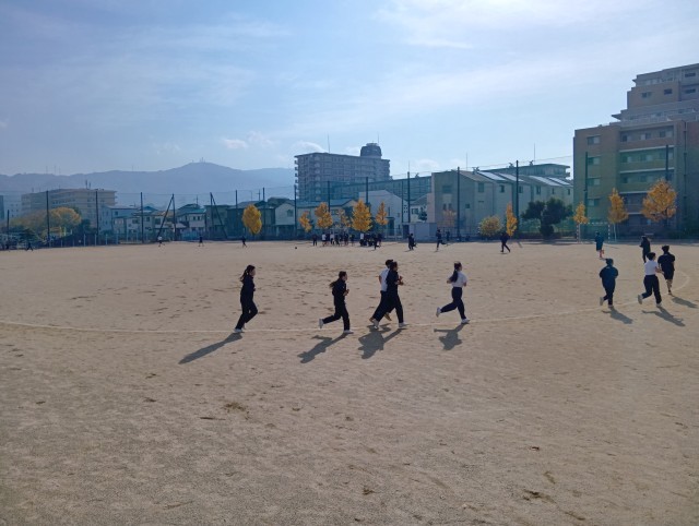 男女ともグラウンドで持久走を行っていました。男女関係なく、「がんばれー!」の声援が聞いていて、とてもよかったです。授業でも、仲の良さが出ていました。