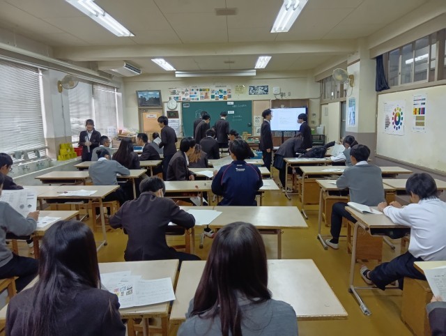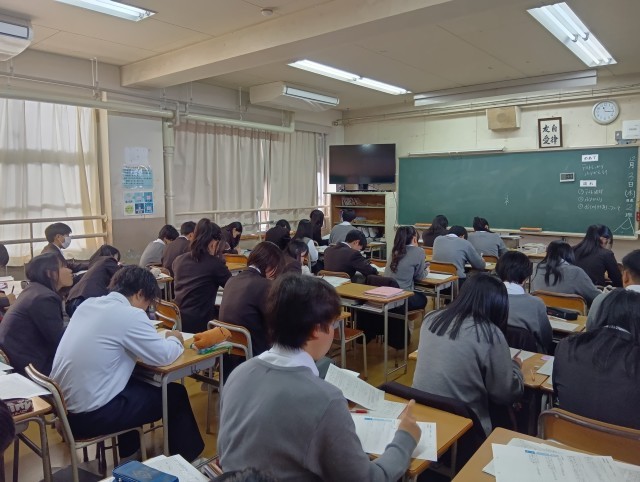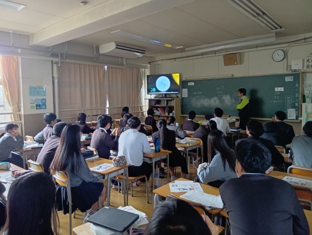 写真は上から、1組(理科)、2組(国語)、3組(美術)です。2組と3組では、期末テストの返却が行われていました。1組では、楽しそうに宇宙に関する動画をみんなで静かに見ていました。