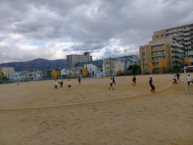 男子はグラウンドでサッカーを、女子は活動後に体育館で期末テストの返却が行われていました。