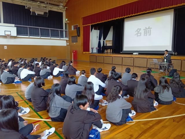今日は講師の方を本校にお招きして、障がい理解学習〜ともに生きるために大切にしたいこと〜と題して、講演をしていただきました。授業のねらいは「障がいのある方の講演や交流を通して、互いのちがいを認め合い、ともに生きていくために大切にしたいことについて考える機会とする」でした。48期生の子どもたちの話を聞く態度は抜群で、講師の先生からもお褒めの言葉をいただいたほどです。講演会後は、教室で静かに感想文を書くこともできていました。