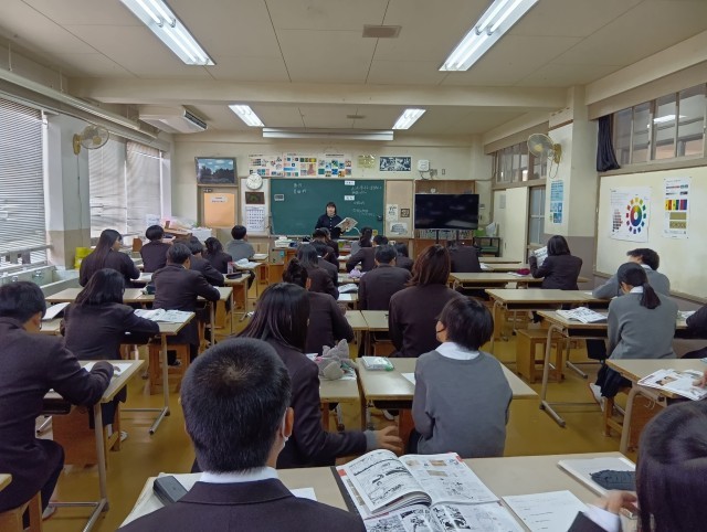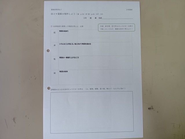 学習内容は「漫画で表現する」でした。学習プリントを使いながら、授業が進んでいました。