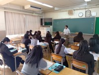 今日は本校担当の薬剤師さんをお招きして、薬物乱用防止教室を行いました。薬物(タバコ、大麻、アルコール)の危険性を動画やスライドを使って説明していただきました。薬物には依存性があり、はっきりと「断る勇気」が必要であると講師の先生は、おっしゃっていました。講演会後は、各自で振り返りとして、一人ひとりが静かに感想文を書くことができていました。
