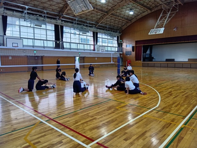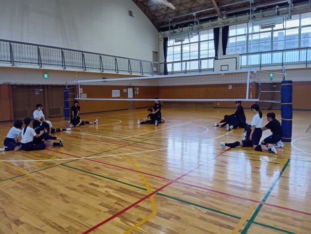 今朝の女子バレー部の朝練の様子です。練習前には、きちんと準備体操を行っていました。