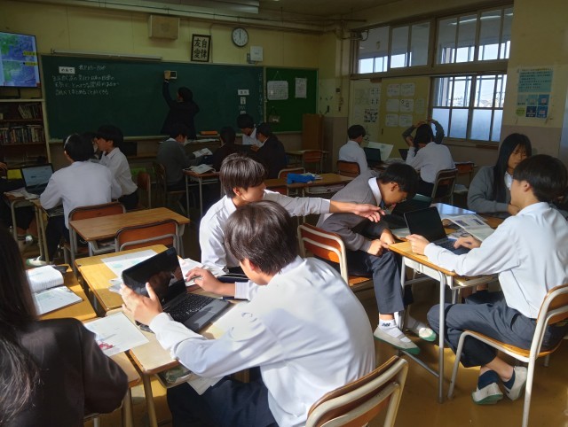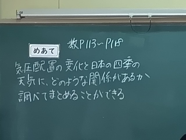 学習内容は「大気の動きと日本の四季」でした。新しく導入されたタブレットパソコンが大活躍で、そのタブレットを使って「調べ学習」が行われていました。