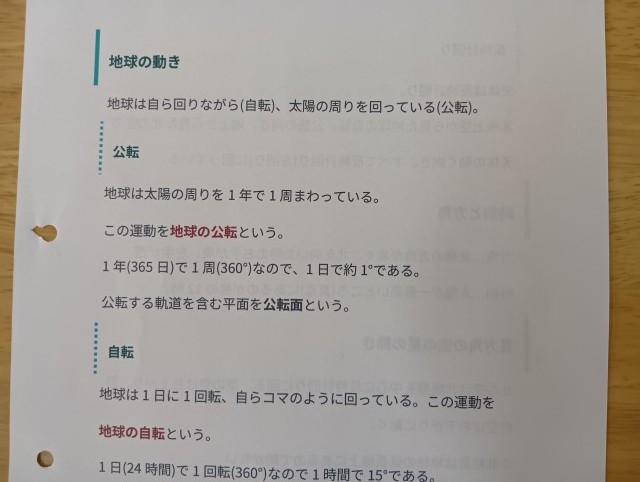 「地球の動き」についての復習の授業が行われていました。とても静かな教室でした。