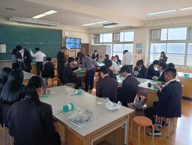 家庭科室での「指編みマフラー」の実習でした。一生懸命に、集中して、作業をする47期生に感心しました。