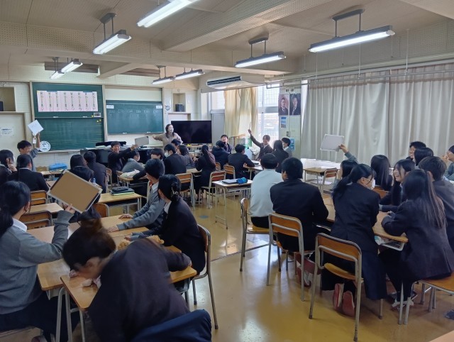 写真は上から、1組(音楽)、2組(理科)、3組(数学)です。各クラスの学習内容は以下の通りです。