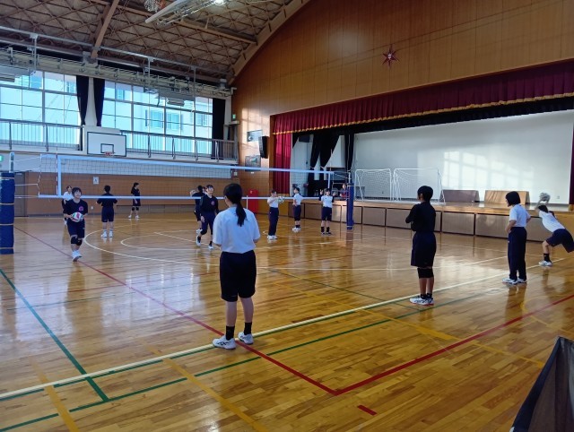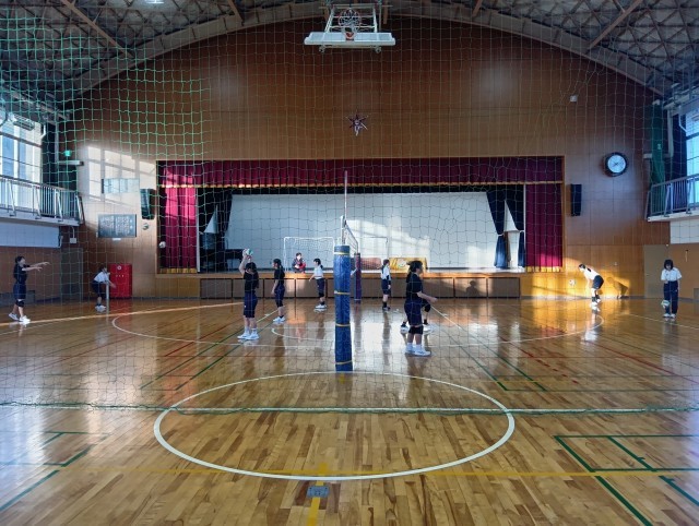 今日の女子バレー部の朝練の様子です。元気で、爽やかなあいさつがいつもできるクラブです。