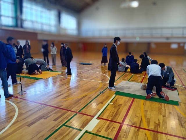 今日は大東市青少年指導員様のご配慮により、大東・四條畷消防本部より3名の救急隊を本校にお招きして、救急救命講習を行いました。各部の部長と生徒会役員、地域の方や先生方と一緒に本物の講習を受けました。私たち教職員にとっても、毎年行っている救急救命講習に加え、新たな学びがありました。また、講習会終了後には、青少年指導員様から学校図書館に本の寄贈をしていただきました。大切に使わさせていただきます。ありがとうございました。