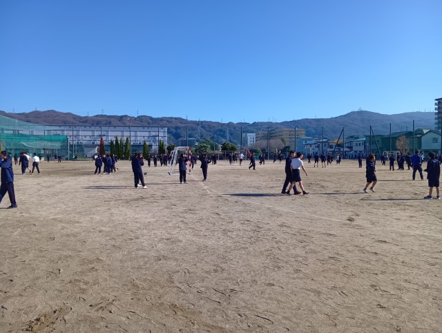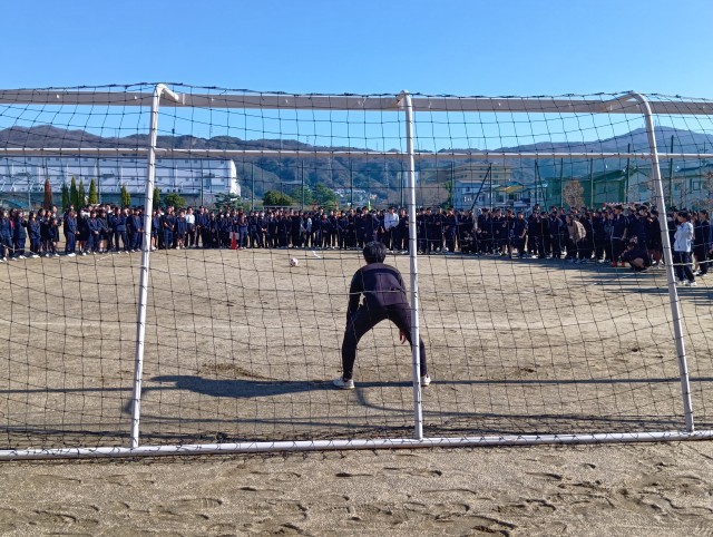 学期ごとに生徒会役員が企画・運営する生徒会行事が行われました。テレビ番組でおなじみの「けいどろ」(逃走中)を全校生徒と全教職員で、楽しく、一生懸命に、必死に行いました。行事を盛り上げる3つのミッション(英語並べミッション、バレーボールチャレンジ、PKチャレンジ)がさらに行事を盛り上げました。天候にも恵まれ、生徒も先生もよい運動にもなりました。