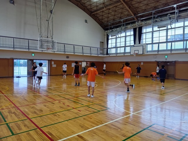 午後からは、体育館で男子バスケットボール部が練習をしていました。縄跳びを使った基礎練習をとにかく数多くこなしていました。外は雨が降っていましたが、生徒はたくさんの汗をかいていました。