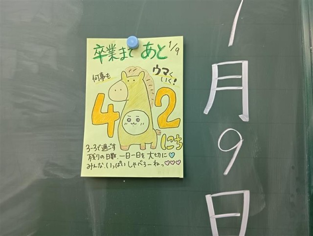 黒板に卒業までのカウントダウン表が貼られていました。3年生(46期生)は、卒業まであと42日です。