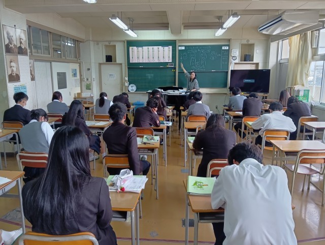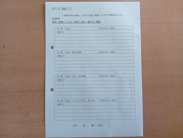 学習内容は「アイーダ」でした。先生の話を静かによく聞いて、鑑賞シートに記入をしていました。