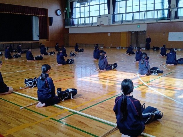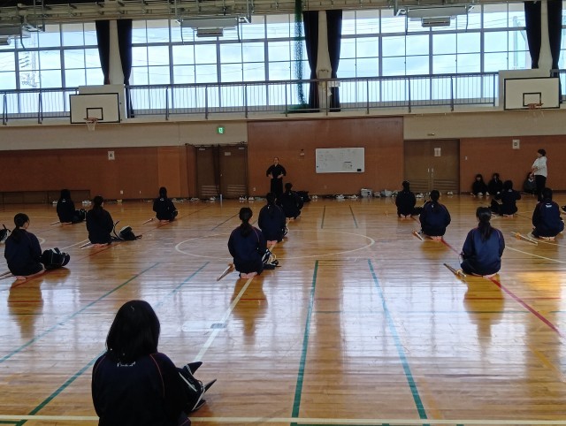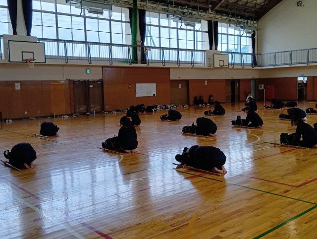 学習内容は「剣道」でした。防具のつけ方から基本的な動作までを学習していました。初めて着る防具をとても上手につけている48期生に感心しました。